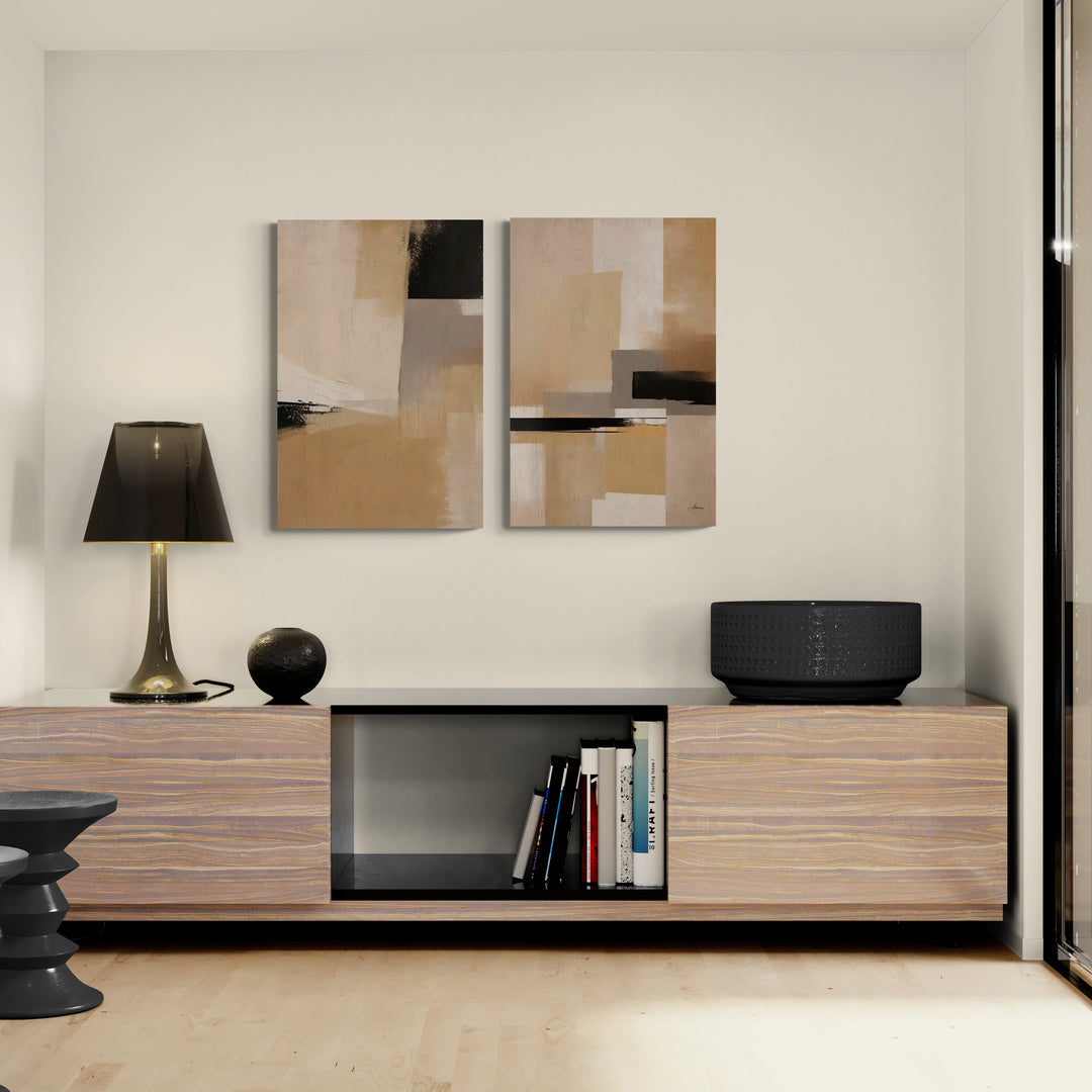 Ce duo minimaliste conjugue des tons naturels et des textures subtiles pour créer une ambiance douce et contemporaine. Entre beige sable, gris doux et noir feutré, chaque toile joue sur les contrastes calmes et les superpositions géométriques pour instaurer une atmosphère reposante et élégante. Idéal pour les chambres ou les intérieurs à la recherche d'équilibre.