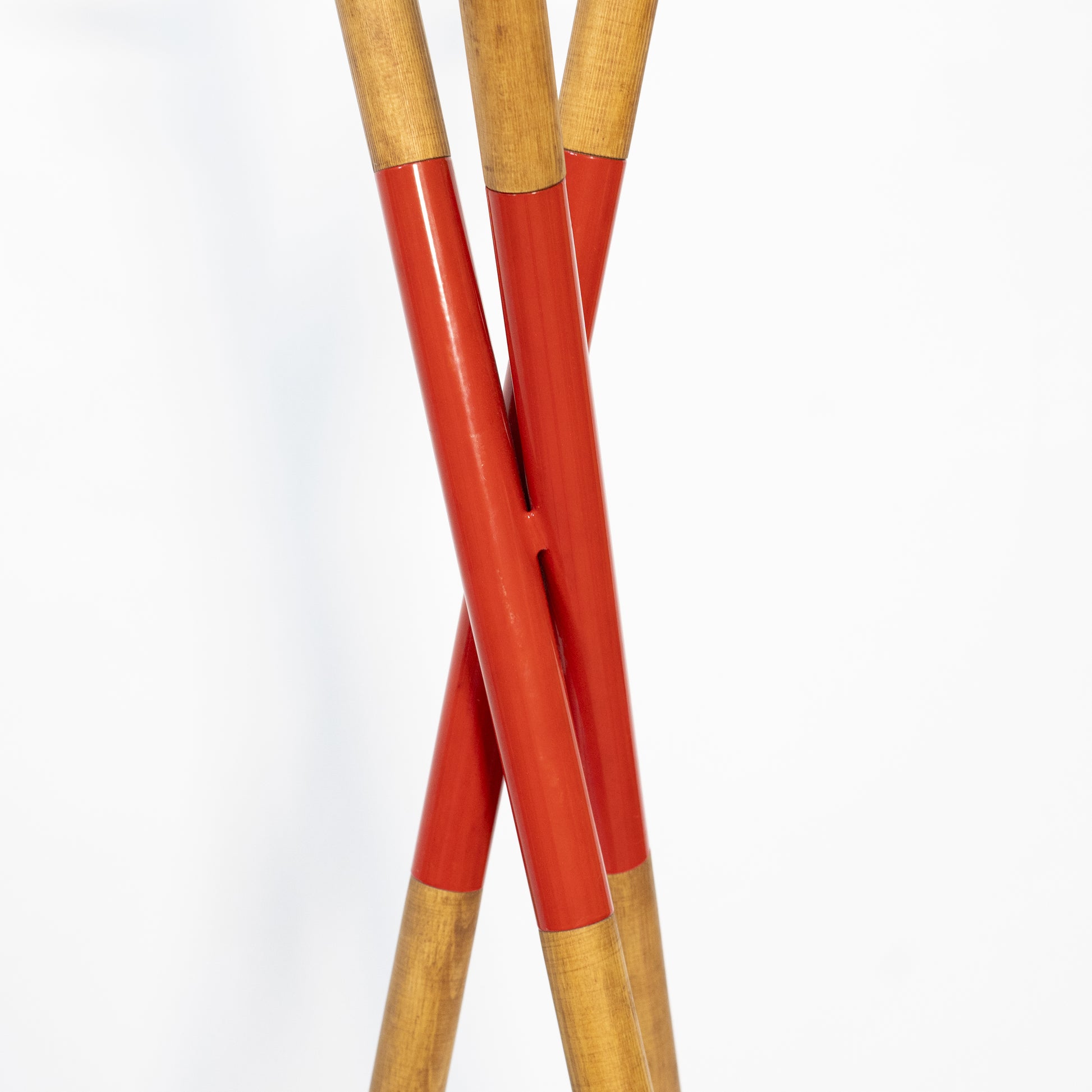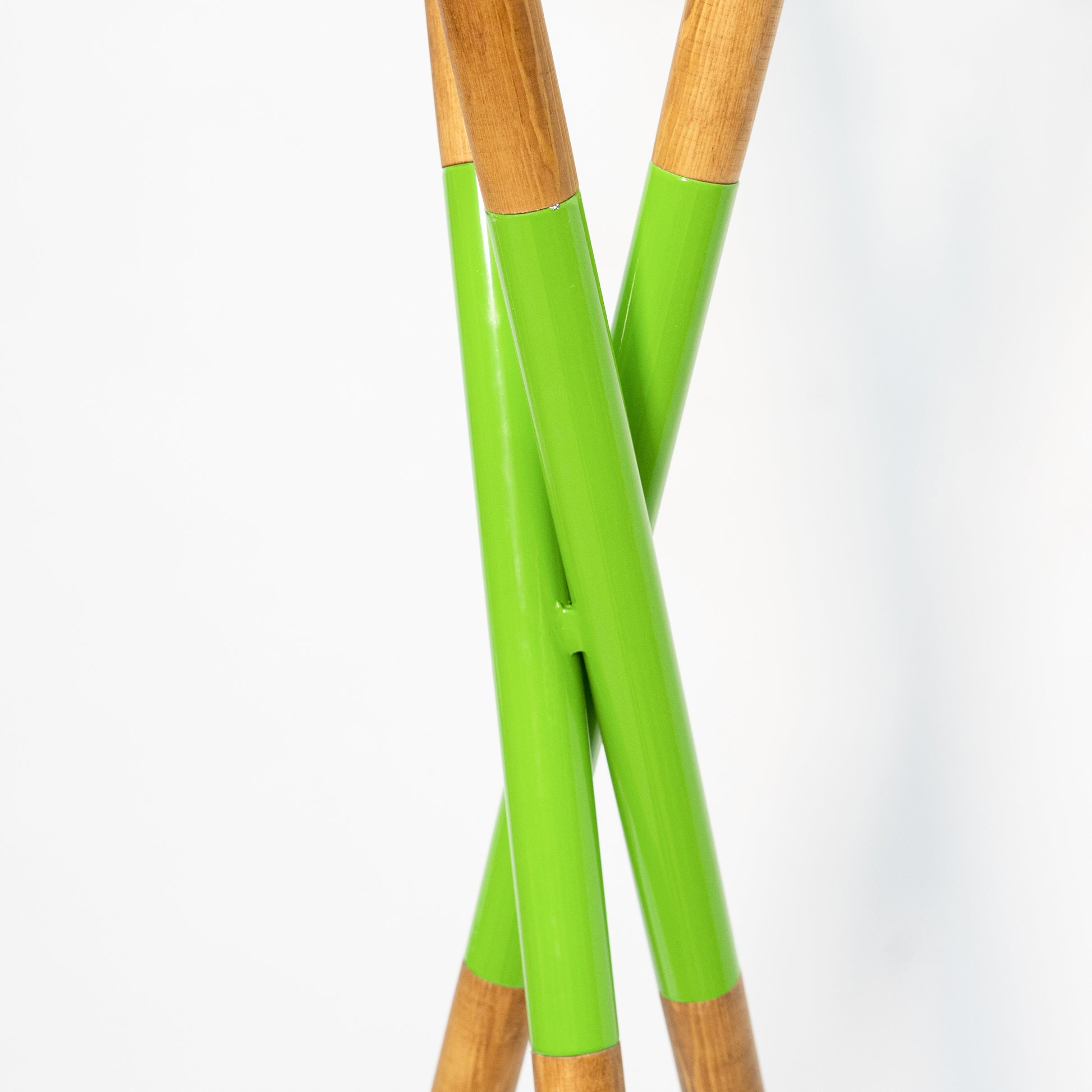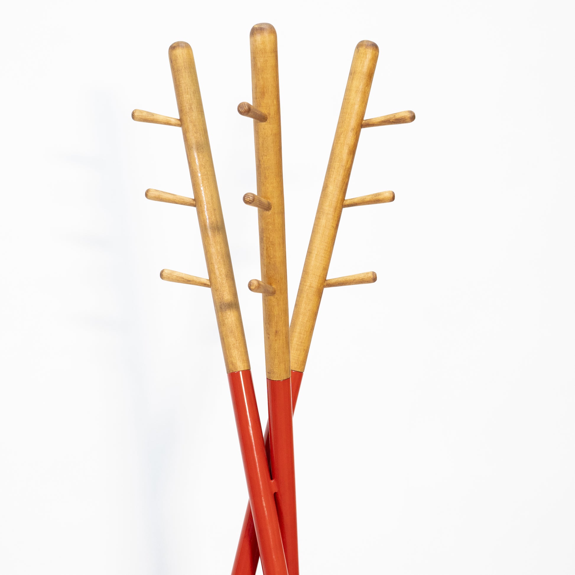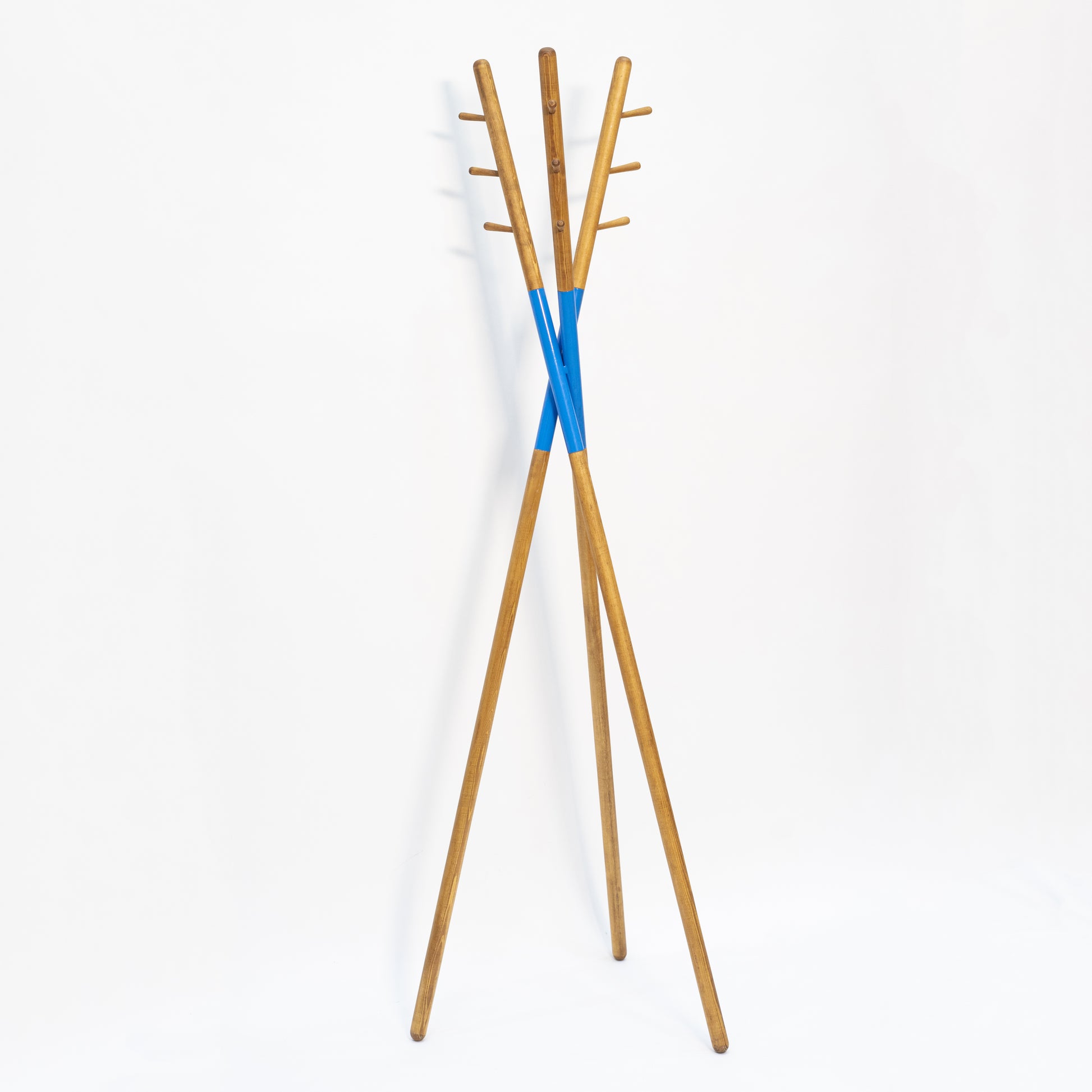 Ce porte-manteau en bois massif rehaussé d’un élégant détail en acier au centre Son style épuré et contemporain s’intègre parfaitement dans une entrée une chambre un bureau ou un hall d’accueil Avec ses trois bras équipés chacun de trois crochets il offre une solution de rangement stable et pratique pour manteaux vestes sacs et accessoires